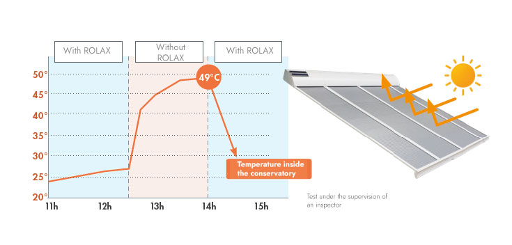 ROLAX acts as a heat shield against the sun’s rays in summer and the cold in winter, so you can enjoy your conservatory or glass roof all year round.